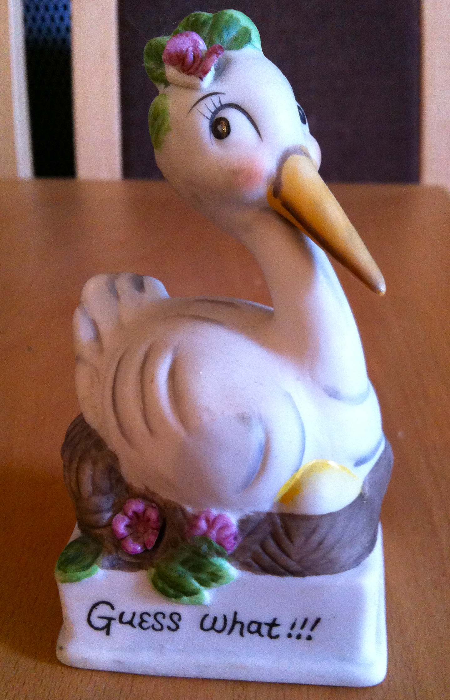 At the time, I understood the stork’s message, and the circumstance it was supposed to be for. Which made me laugh. Hysterically. Other than thinking it was funny, I probably wasn’t too keen on it at the time. I was, after all, 12, and so likely not especially kind about her naiveté. But my sister’s earnestness about the gift – that she got because she thought I’d like the bird, that she picked it for me – and the multi-layered joke of it has had me keep it.