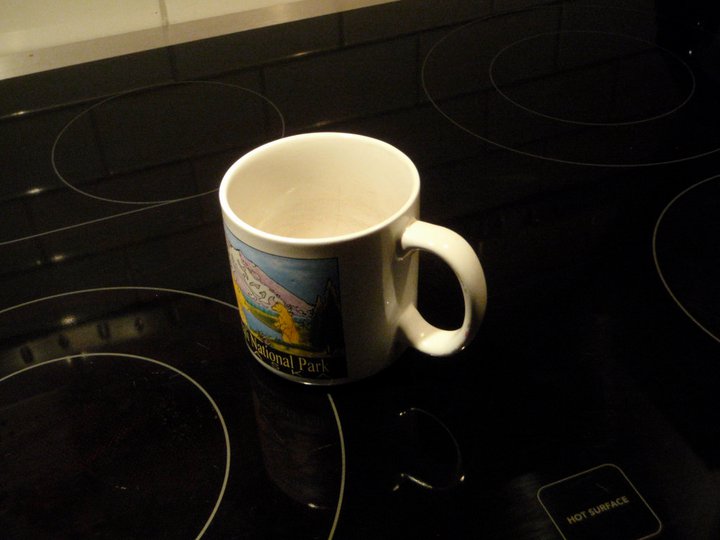 This particular mug has additional significance for me now. A few years ago, a slight accident nearly sent this memento to the trash, but I learned about an old kitchen trick that saved it and gave it an additional story. Due to mishandling (i.e. I dropped it), the handle was broken. I was saddened at the loss of my mug, but then learned about the magical properties of…Carnation evaporated milk. Not sure how it works, but it does. I soaked the ends of the pieces in the milk, reassembled the handle, let it set for 24-hours, et voila: