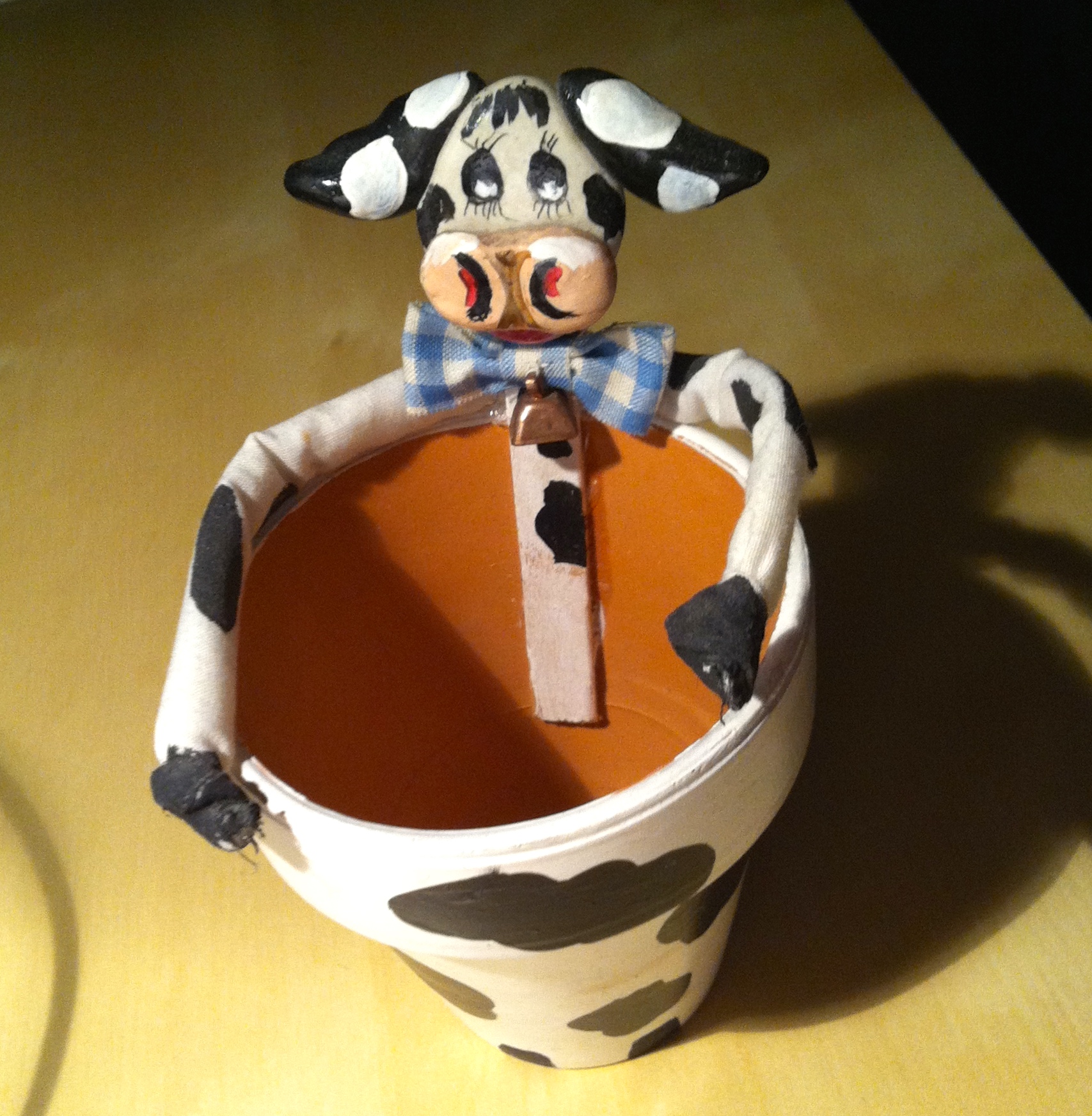 If I remember correctly, this cow-er pot arrived nearly 20 years ago, one of many home decorations from my mom. A blend of the cow theme with my recent forays into gardening, it should right have ended up with some greenery in it. But I enjoyed its happy little face and jaunty bow tie and bell, so it became a part of the collection of cups and pots on my desk – a collection of vessels that then collect other collections. It’s a bit short for pens (in keeping with the theme, it kept tipping) so it has variously over time been the repository for coins and paper clips (short-lived, as they fell out the drain hole), and more recently of memory sticks and rechargeable batteries.