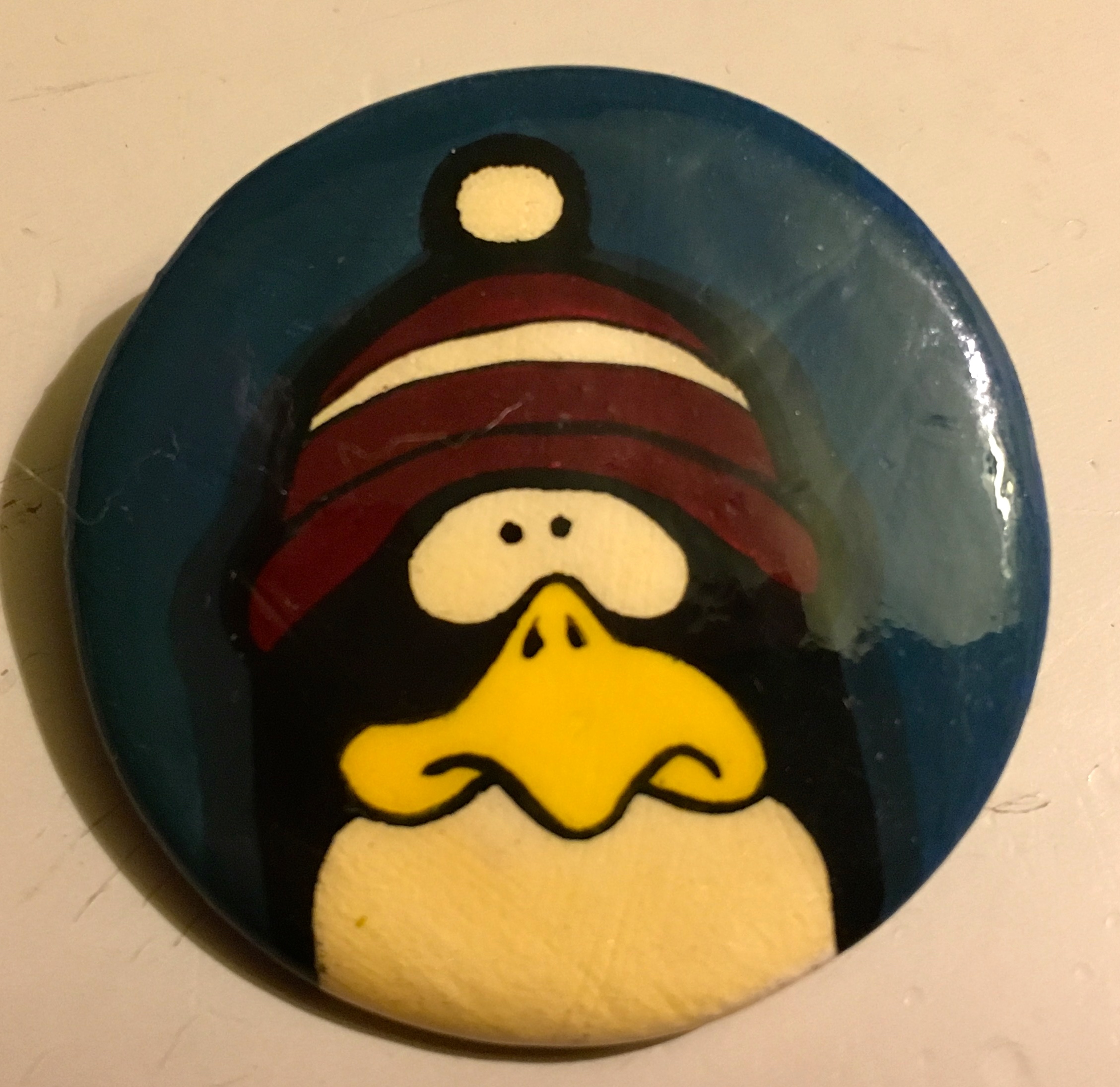 Two other highlights of high school were the musical stylings of The Nylons (not exactly popular, but enjoyed by me and my buddies) and Bloom County, an at-the-time new comic that felt very new and sophisticated in the early eighties. I attended a concert by The Nylons with my fellow music lover Heather, and so the badge. Heather was also a Bloom County compatriot, and she gave me the pin depicting a version of Opus.