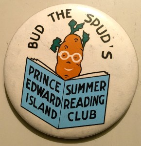 In the summer of 1979, we moved to Souris, PEI. As my sister, brother and I sought out things to do as we got to know our new town, we tended to the local library to keep occupied during long summer days, at home or the beach. The library encouraged reading with Bud the Spud (along with Larry the Lobster, whose pin has gone astray). Bud and his pin bring back memories of that hot, lazy summer in small island town, exploring the dusty streets and adapting to a new home.