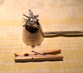 One of the remarkable things about this item is the bee (shown with a clothespin for scale):