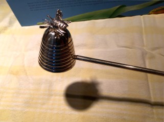 This item is a curiosity – as in, I keep it only because it is odd and curious. This was a Christmas gift from a friend who delights in giving odd things that she finds in odd places (mostly antique shops, or strange little stores in West Vancouver). This item is odd because it is a) so disconnected from me (I’m neither a bee nor a candle person*) and b) it is so completely ill-suited for its stated purpose.