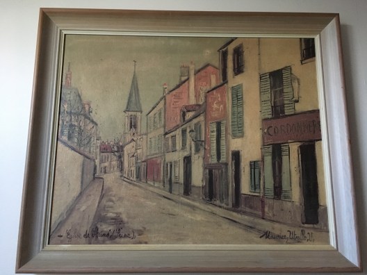 Learning more about the picture itself has only been possible in recent years. (The lack of information led to brief fantasies that the print was one of those lost treasures of the art world…BC woman find priceless painting in family trinket.) It has taken even the Internet a while to catch-up on the cataloguing of artists such as Maurice Utrillo. He’s much-lesser-known than almost any other artist you might think of from the early 20th century (despite Wikipedia’s effusive description of his glory and “international acclaim”).