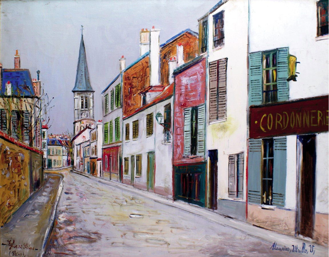 While Utrillo has more famous pieces that are easier to find and reference, this particular one’s provenance eluded me for years. Even now, there is nothing in the way of story or background about the scene; the most relevant info is that it was painted in 1937, and the original is in a private collection with an estimated value of ~$100K. Additional sleuthing revealed the history of the church itself, and the modern view of that same street.