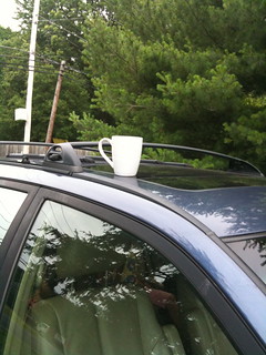 A short one this year, inspired by a comment by a friend. She was describing how she frequently, in her haste to get going in the morning, will leave her coffee cup on the roof of the car only to hear it tumble and crash to the ground as she starts driving.