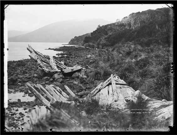 On the Southern end of the island, the 5-person crew of the Grafton is wrecked in the North Arm of Carnley Harbour (so named because of its suitability as a harbour, not because there was any infrastructure whatsoever). Their mostly wooden ship dashed on the foreshore rocks, the crew establishes a shelter and undertakes the struggle of survival with minimal provisions and tools. Their leader, Captain Thomas Musgrave, and the co-leader, François Raynal, establish order and routine, share in the work and hardships, and build an exemplary camaraderie that ultimately enables the entire group to survive and almost thrive in their desolate location. Being inland, their chances of discovery and rescue are minimal, made even less likely by the fact of their being in a different location altogether than their planned itinerary (they had been to and were returning from nearby Campbell Island when they made their unplanned and disastrous diversion to the Aucklands).