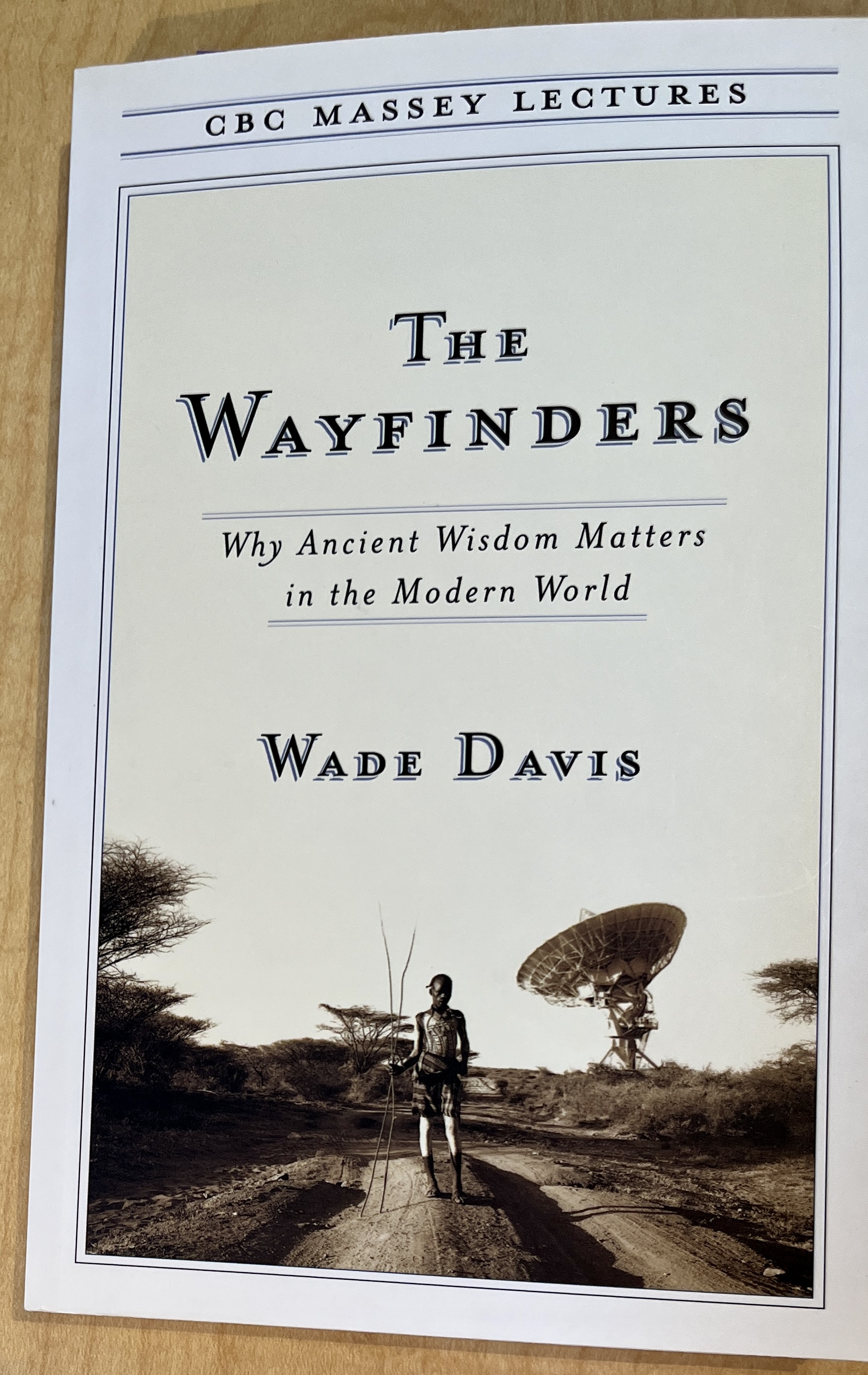 I’ve had this book for many years, likely not long after it was published. I recall reading a few previous books in the series – especially Payback (Margaret Atwood) and A Short History of Progress (Ronald Wright) – and purchasing this one when it came out. After starting it, I think I ran out of steam for social and cultural awareness. Then, a few days ago, I got an invitation to a lecture by Wade Davis at an upcoming event and it seemed like a sign of some kind to finally finish reading this one.