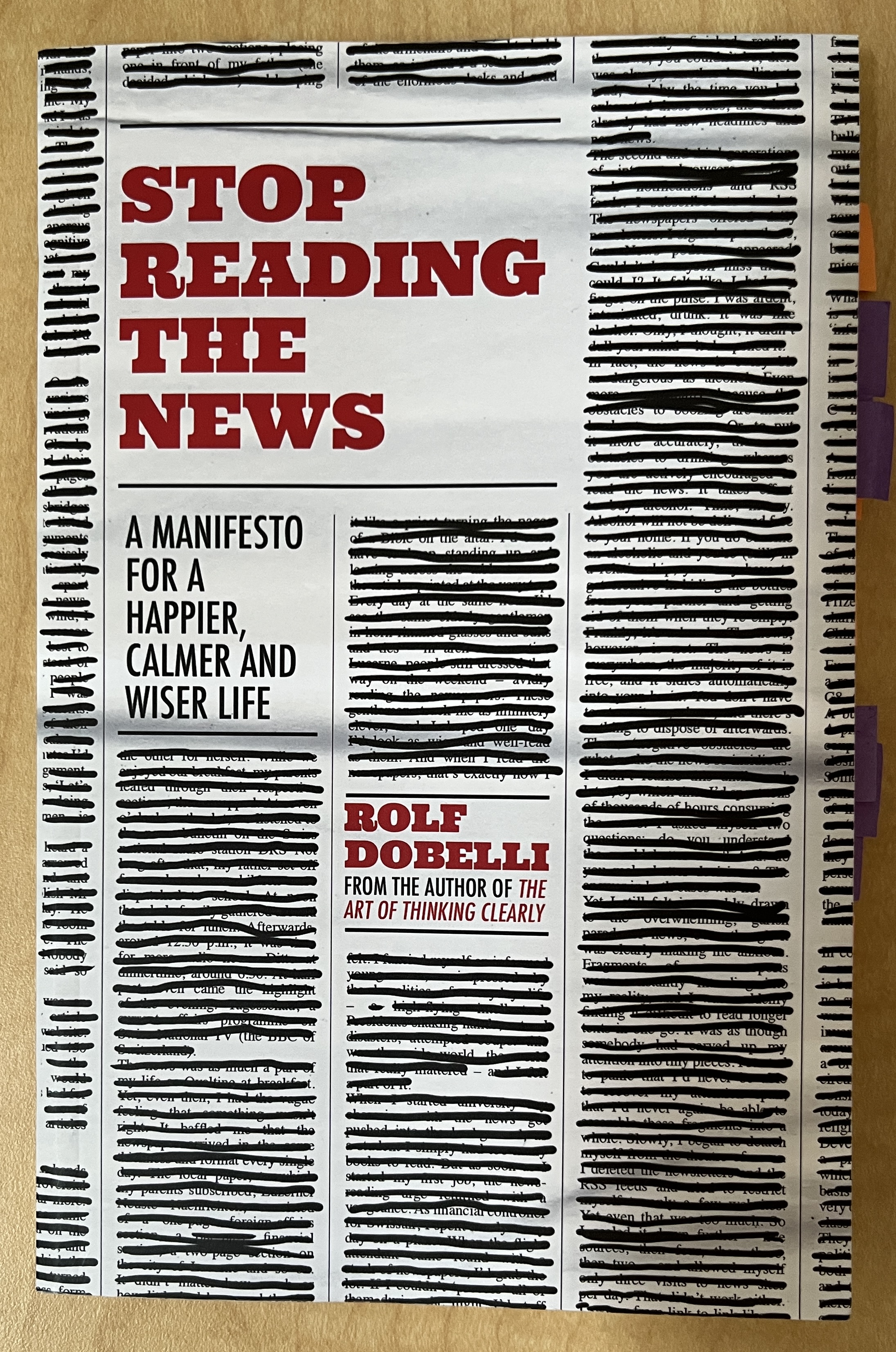 Much of “the news” Dobelli refers to is the internet, but also most mainstream media (most of which is viewed online and so captured in our doomscrolling). In addition to considering the time and the relevance of what one sees online, he asks two main questions: do you understand the world better now? And: do you make better decisions? Most people being honest with themselves, would say no, or at least rarely.
